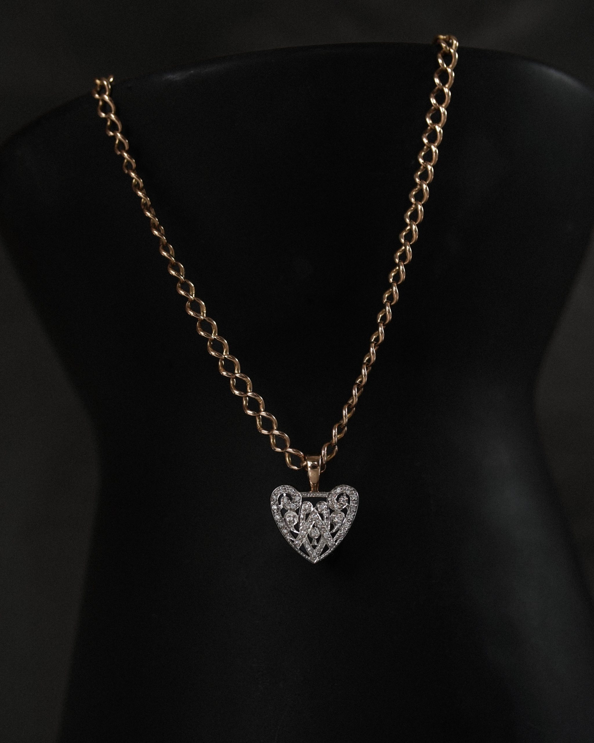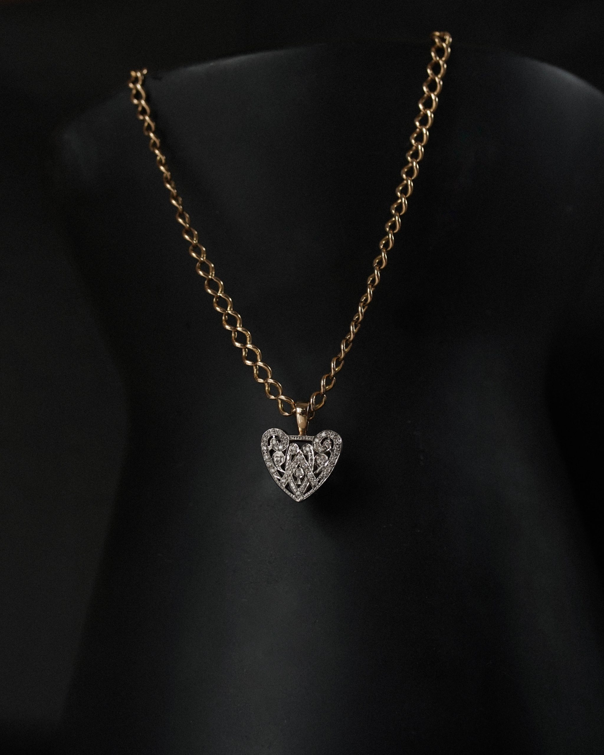My appreciation for heart shaped jewellery is a more recent development. Last year I introduced the petite Emilia hearts as part of the Shakespeare’s Daughters collection and I now wear a white diamond one on my anklet as an everyday piece. This unique pendant I sourced offers an enchanting interpretation full of regal old world charm. Diamond encrusted its brilliant setting captures the light and sparkle from every angle. With its intricate detail I have positioned one a classic curb link chain so as not to detract from its presentation. The detachable design allows it to be effortlessly paired with any of your favourite chains.